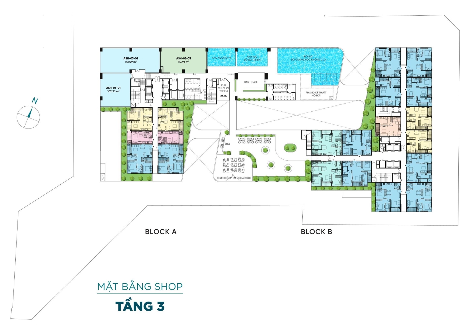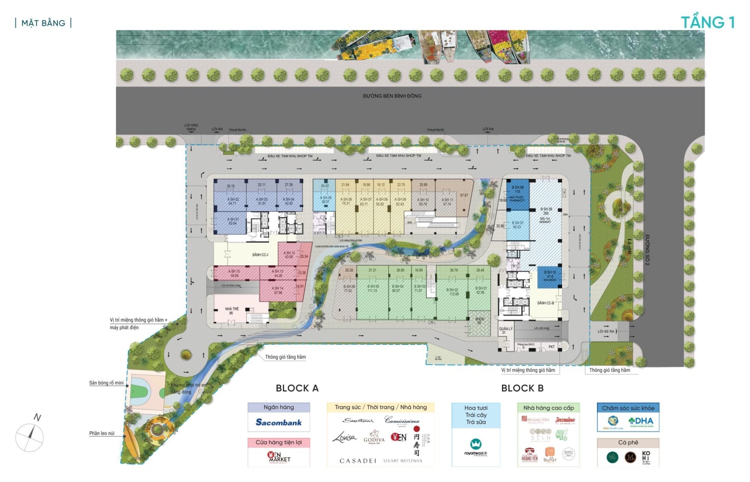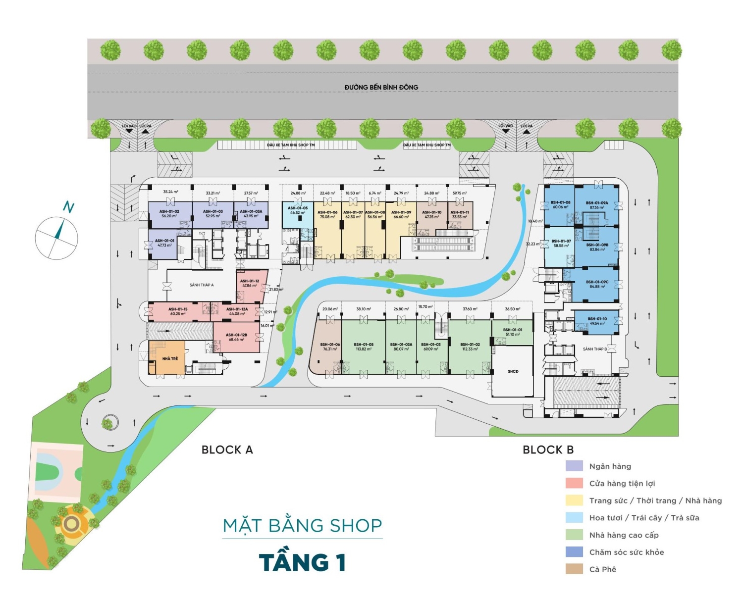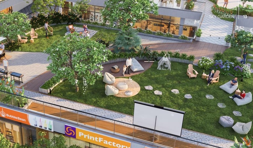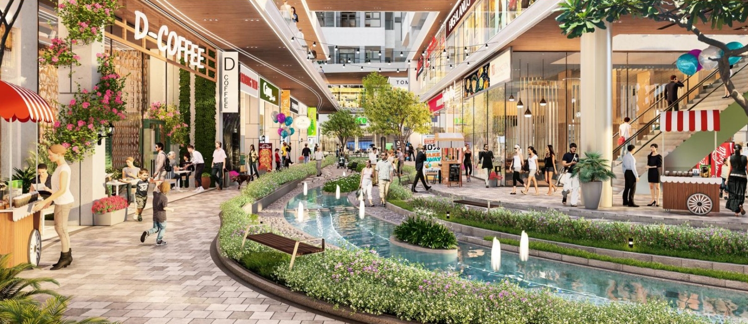 Phố chợ thương mại mở: tuyến phố thương mại mở ngoài trời sầm uất, nhộn nhịp, đầy sắc màu, được bố trí dọc theo hai bên bờ suối cảnh quan giữa lòng dự án.