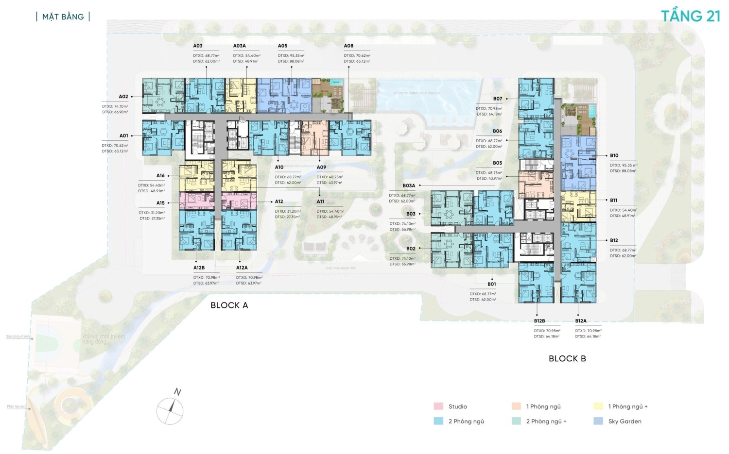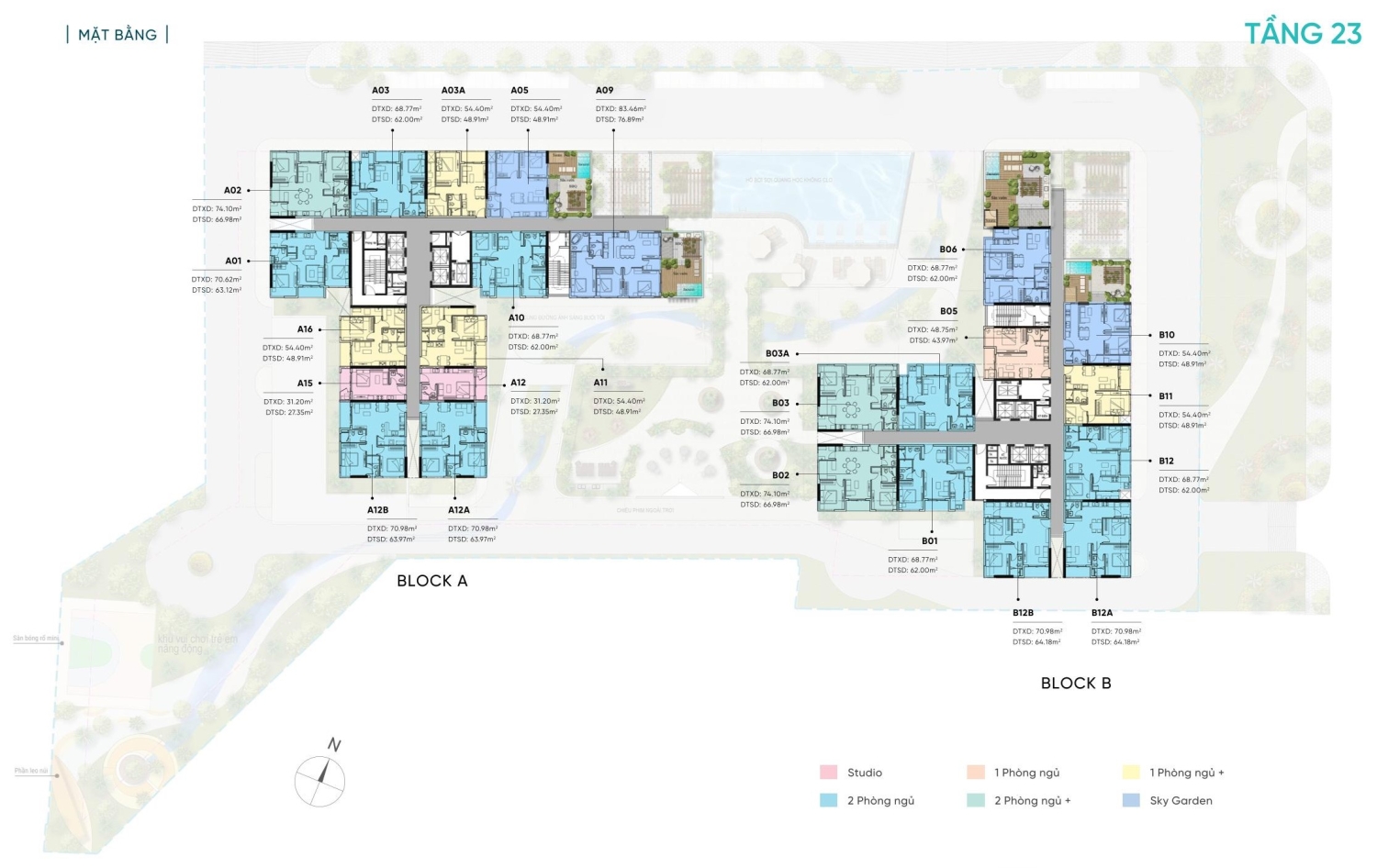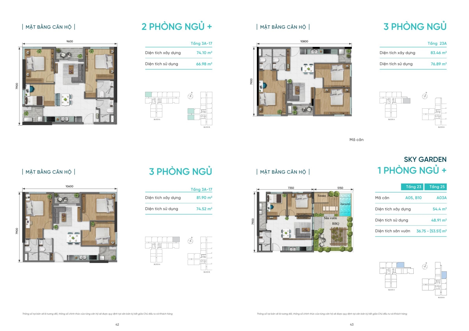 | Loại hình căn hộ | Studio, 1PN, 1+1PN, 2PN, 2+1PN, 3PN, Sky Garden |