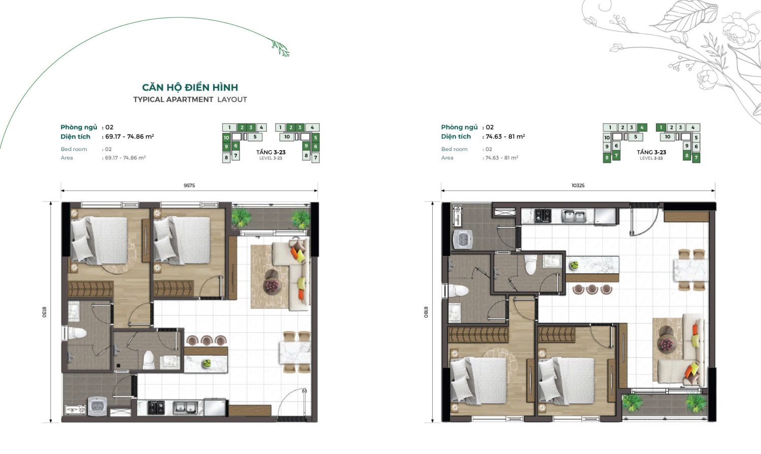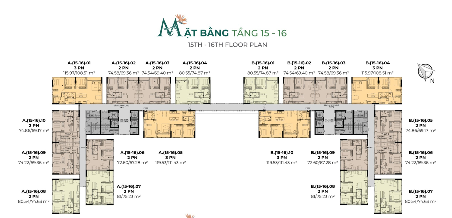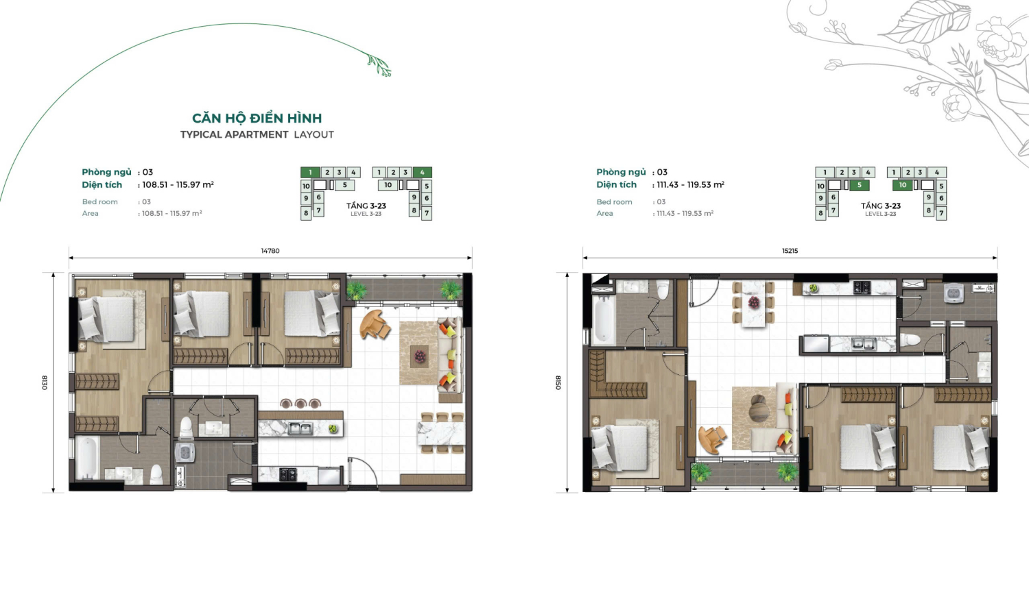 | Diện tích: | Căn 2PN [74 – 81m2] 3PN [116 – 120m2] Penthouse [205 – 347m2] |