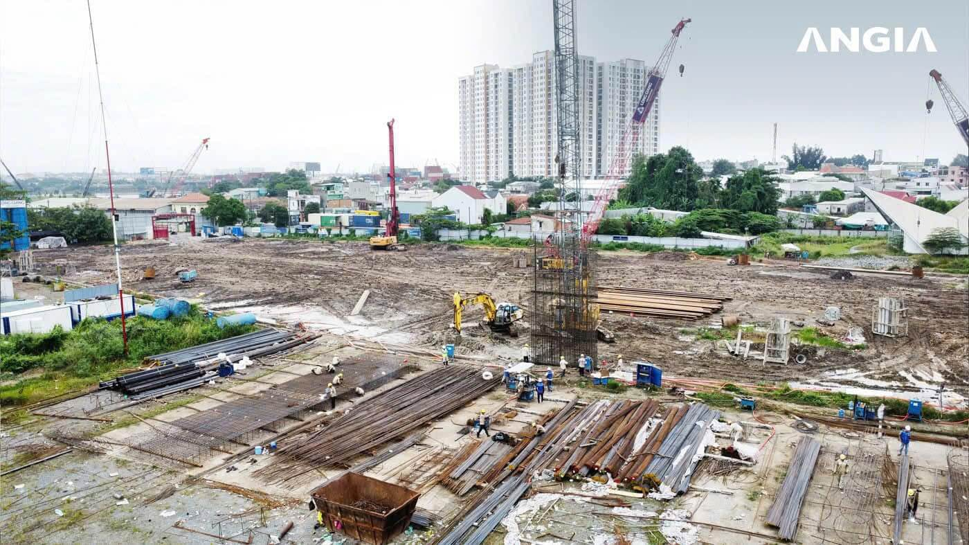 Trên công trường The Gió Riverside, các hạng mục cốt khoan nhồi và tường vây đang được triển khai hệ thống, đảm bảo một móng nền vững chắc cho toàn bộ dự án.